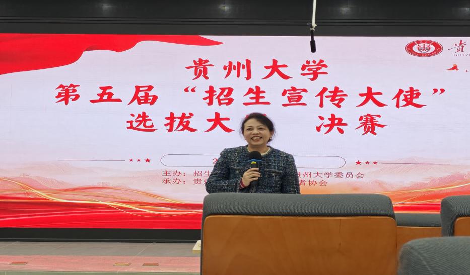 为加强学校招生宣传队伍建设,吸引更多学生参与爱校、荣校宣传,鼓励在校学子分享贵大故事、传递校园温度,提升生源质量,2025年11月11日晚,贵州大学第五届 “招生宣传大使” 选拔决赛在公共管理学院雅正楼123报告厅成功举办。